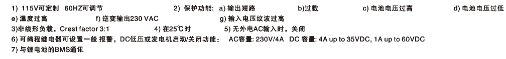 逆變輸入電壓: 19-33V 逆變輸出電壓: 230VAC±2%