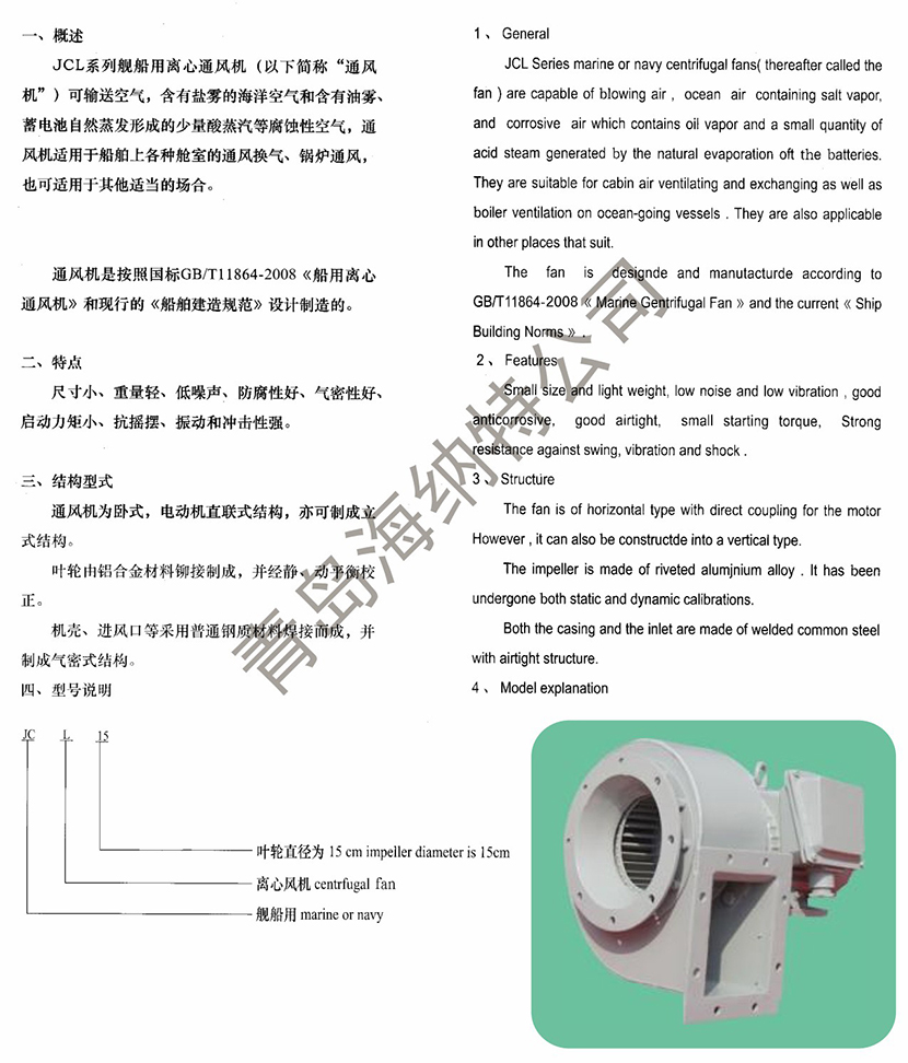 | JCL系列艦船用離心通風機 | |||