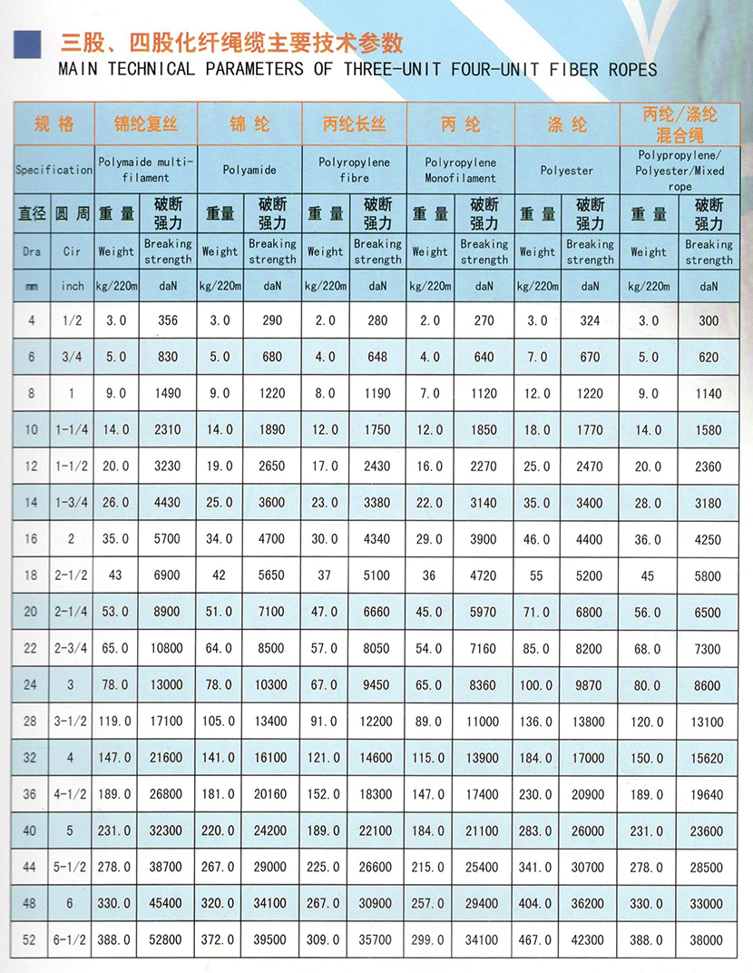 | 丙綸三股四股化纖繩纜 | |||